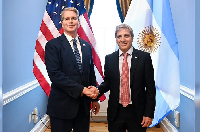 «Satisfecho de darle la bienvenida a @LuisCaputoAR y a la delegación argentina al @USTreasury», escribió Bessent en su cuenta de X (ex Twitter).